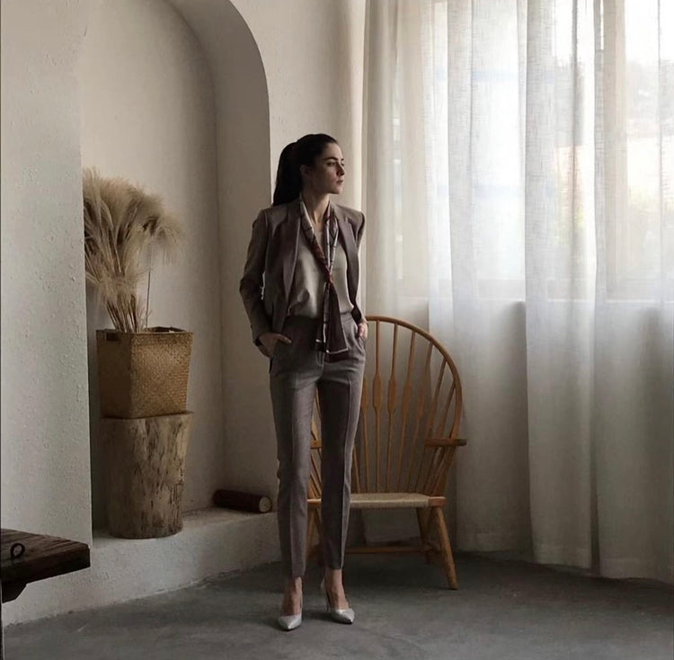 Nous adaptons soigneusement nos costumes d'affaires pour femmes à vos mensurations et à votre posture afin d'assurer le meilleur ajustement possible.